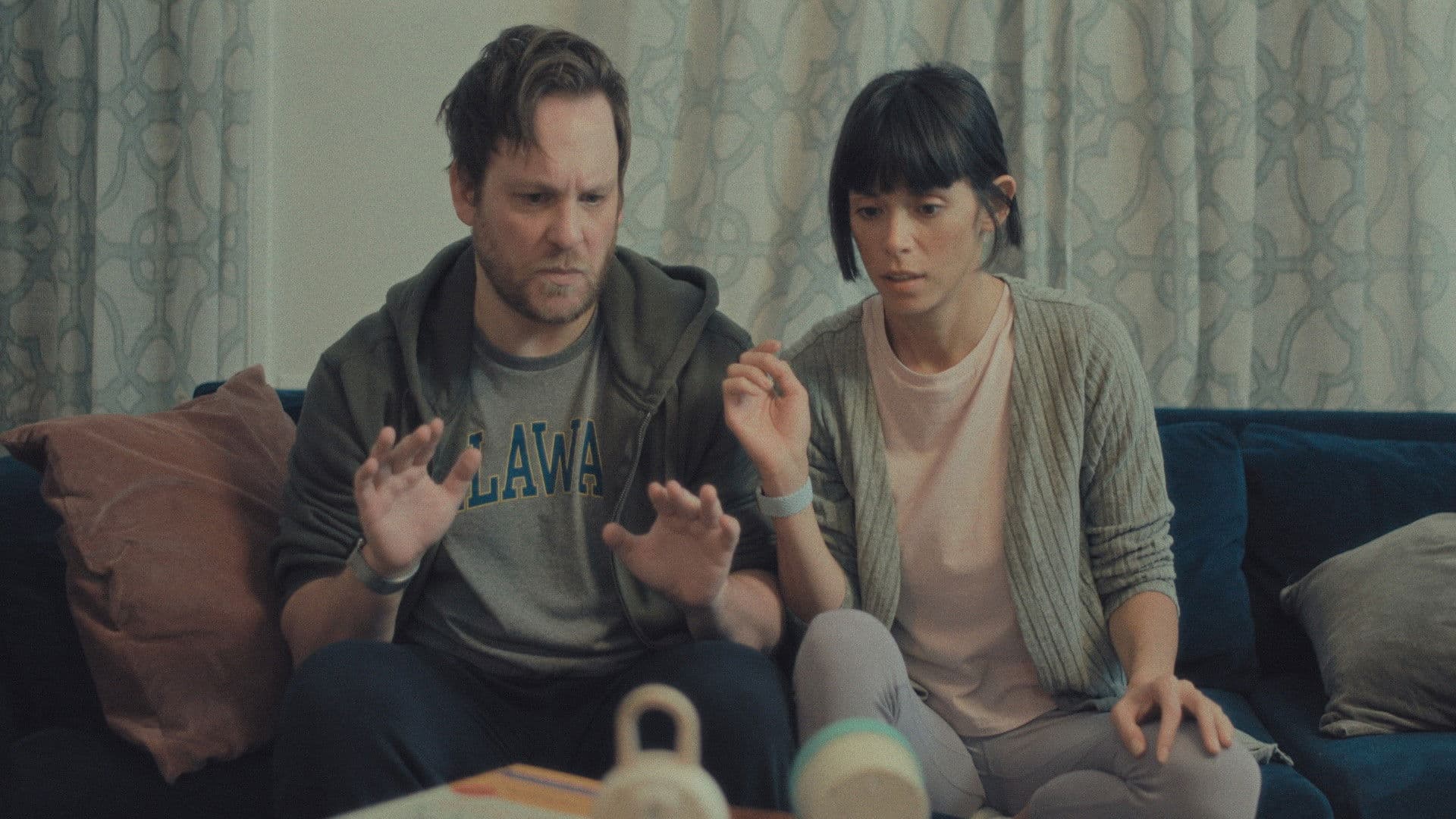 Caitlin and Kevin are vexed by their child and their parents through their baby monitor as they try to teach their infant daughter to soothe herself.